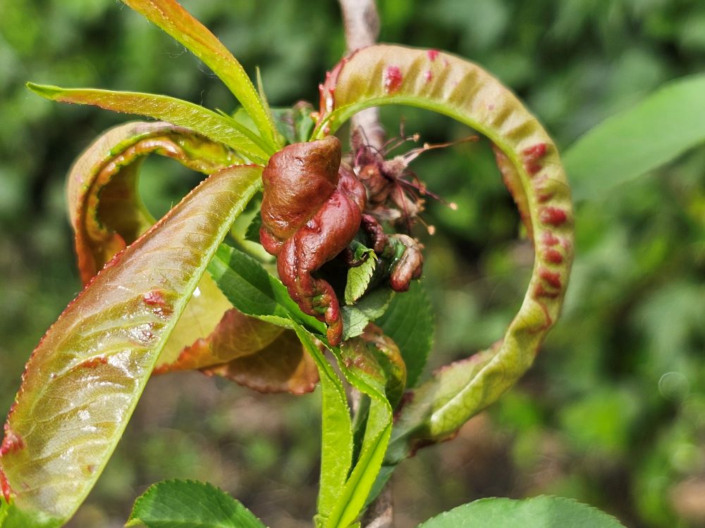 Kora tavasszal a legtöbb őszibarack és nektarin fajtánál gondolnunk kell a tafrinás betegségre, mely akár teljes lombhullást is okozhat. A gomba spórái (konídiumai) már 4 0C környékén szóródnak, amik nedves növényi felületre jutva csírázásnak indulnak és megfertőzik a növényt. A fertőzés nyomán kezdetben fodrosodnak, ráncosodnak és színesednek a levelek. A jelenlegi borult, nedves, változékony időjárás kedvez a kórokozó fertőzésének. Tehát amint megengedi az időjárás, érdemes kezelni a fákat! A fertőzés után csak 1-2 héttel jelentkeznek a deformálódott, elszíneződött levelek. Így a kezeléssel nem várhatunk a tünetek megjelenéséig, csak megelőzéssel (preventíven) lehet védekezni a kórokozó ellen!