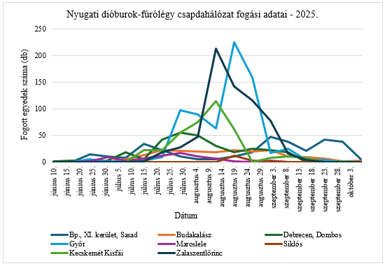 Nyugati dióburok-fúrólégy csapdahálózat fogási adatai