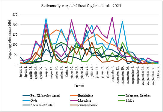 Siklóson, Kecskeméten és Zalaszentlőrincen nem detektáltak szilvamolyt. A legtöbb egyedet Maroslelén (14 db) figyelték meg.