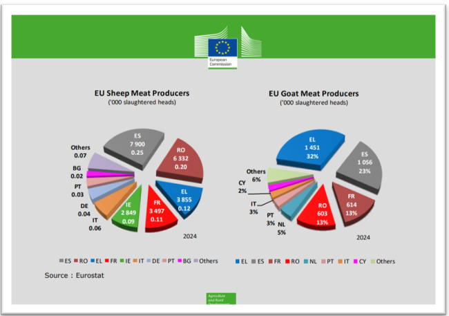 A tavalyi évben a juh- és a kecskehús-termelés legjelentősebb része továbbra is néhány EU-tagállamban összpontosult, Spanyolország, Románia, Görögország, Franciaország és Írország adta az EU teljes juh- és kecskehús-termelésének több mint kétharmadát.